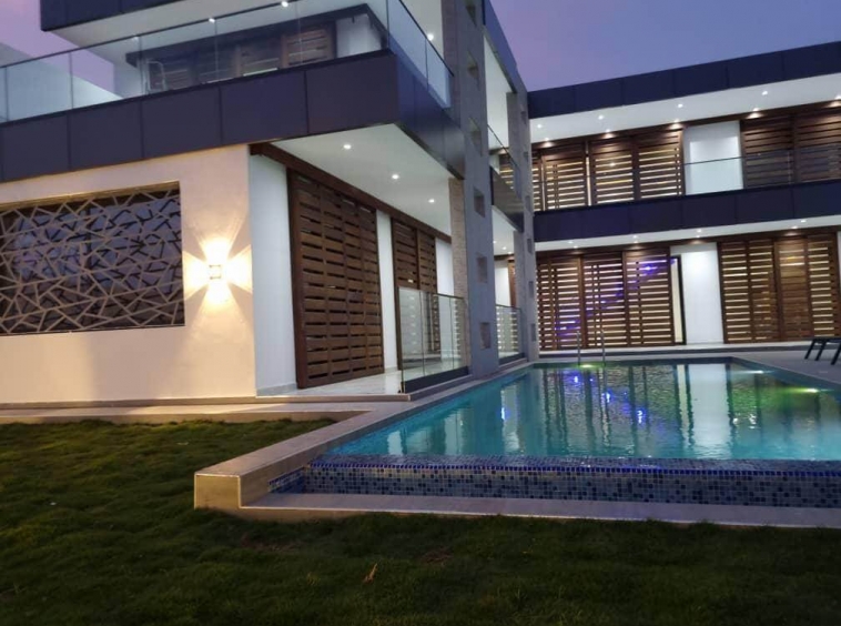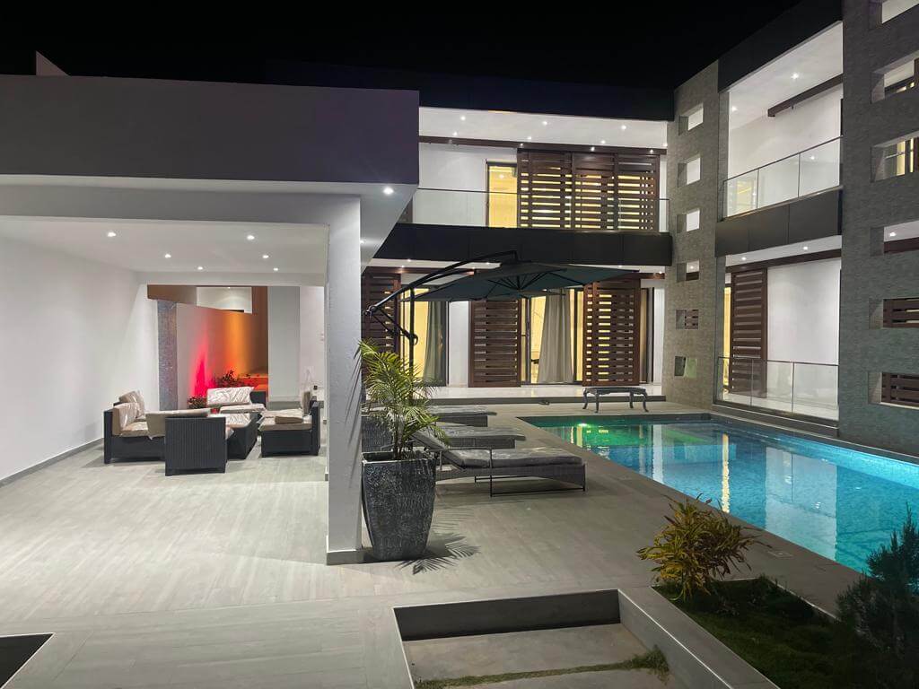 Elle est composée de : 4 chambres, 4 salles de bain, salon, cuisine- cellier, une terrasse couverte et la villa est vendue entièrement meublée. Sauna et hammam, Piscine et jacuzzi, Pool- house, Cascade d’eau, Salle de sport, Camera de surveillance.